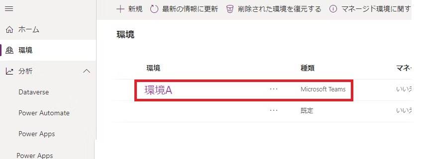 PowerPlatform管理センターにアクセス