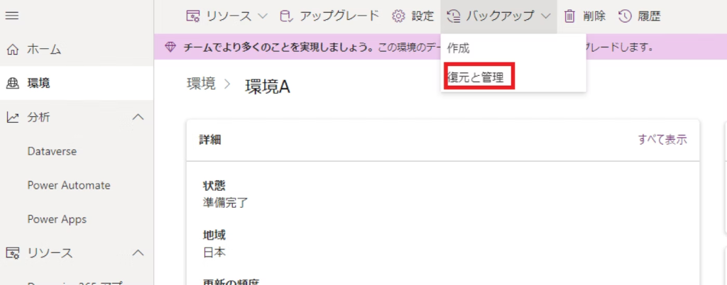 復元と管理を選択