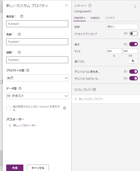 拡張コンポーネントのプロパティを オン(関数を作れるようにする)